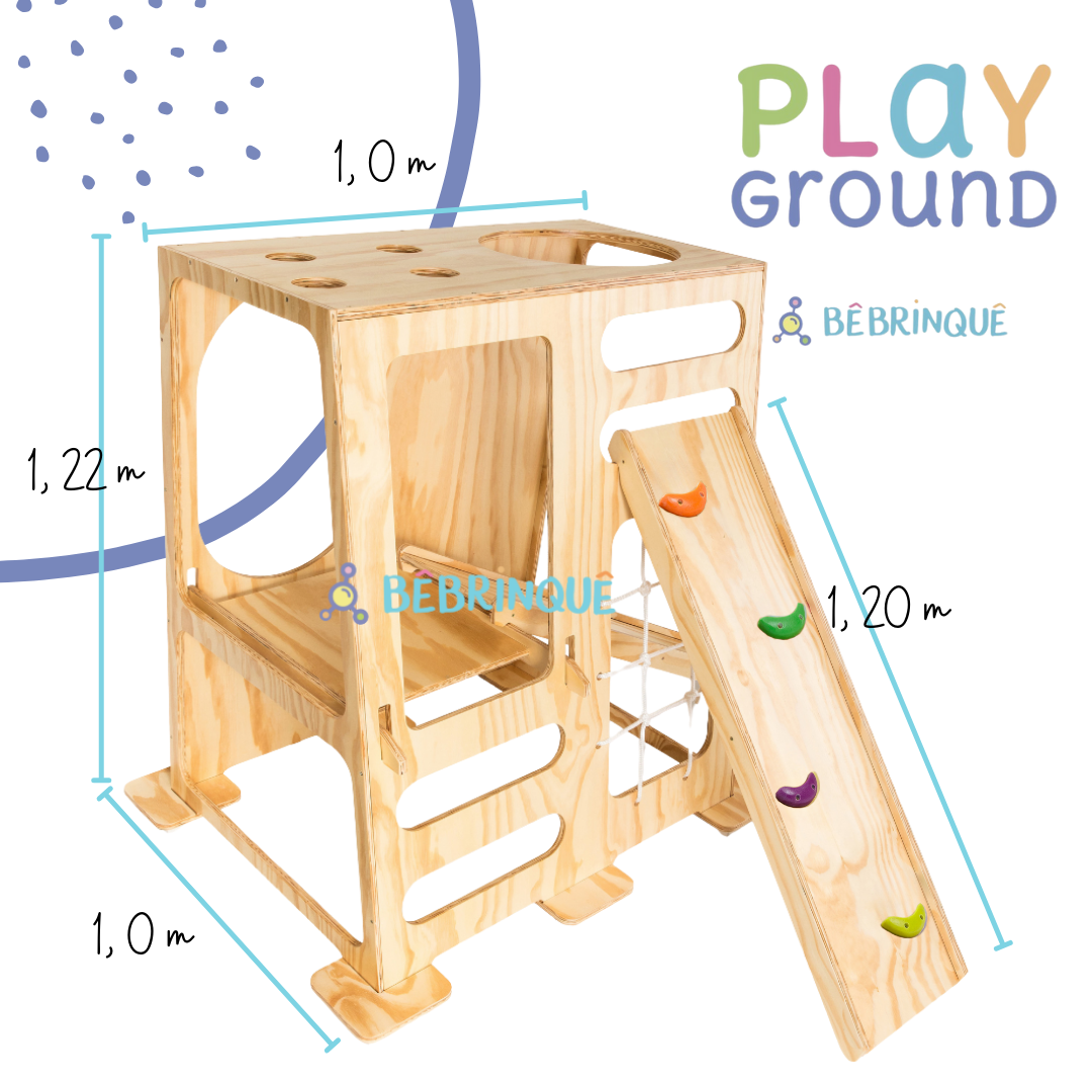 As crianças podem subir no Play pela rampa de escalada, pela escada, pela corda de escalar, atravessar uma ponte, usar o escorregador, subir pela parede de escalada e tudo o que mais a imaginação permitir!!!
